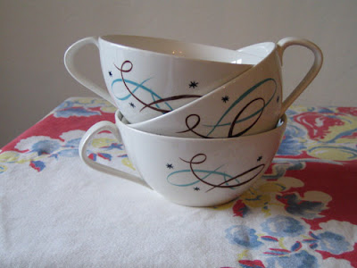 They say write about what you know, so here goes. My name is Missa. I live about one hour north of San Francisco. I love thrifting. I have a husband named Lucas who is wonderful in every way, but unfortunately does not share this love. Often when I leave the house I hear these words: "Don't bring home any teacups!" "Teacups" has become a catchall term with us, as I will admit to having a weakness for decorative dishware among other things that rarely if ever serve any functional purpose in our lives. These are some of the lovely culprits responsible for turning "teacups" into a derogatory word. I also have a 5 month old daughter named Clover who I plan to one day turn into my partner in crime. Sorry Lucas...